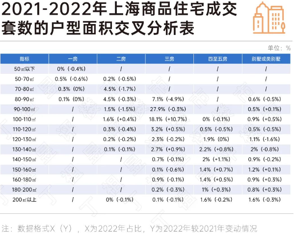从户型面积交叉分析数据来看,过于紧凑的小户型逐渐失去市场青睐,更舒适面积段热度升温。以三房户型为例,2022年,90-100㎡面积段成交占比高达27.9%,高于其他面积段;100-110㎡成交占比次之,较上一年迅速增长10.7个百分点至18.1%,而80-90㎡面积段成交骤减,占比大幅下降4.9个百分点。面积小、总价低曾经是小三房的优势,但随着“房住不炒”下居住属性的回归,购房者观念转变,对室内舒适性的重视度提升,小三房往往通过牺牲一个或多个空间的使用功能才能增加房价数量,其居住体验并不好,因而市场份额出现明显的收缩。