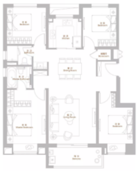 2、120-140㎡舒适型三房,有更多优化户型结构尝试