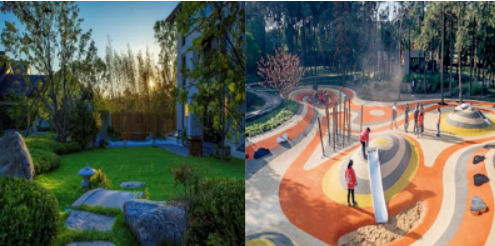超30%的绿化率,在景观打造上更是体现动静结合,互动有序的立体景观。不仅呈现出三季有花、四时有景、五感交触的观景体验,更设有:康养活动区、儿童游乐中心、访客休息区等全龄互动空间,让家以外的乐活空间得以无限延伸。