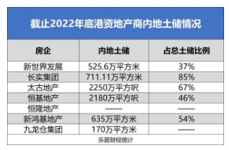 而自从地产行业发生流动性风险以后,港资地产商颇有些重返内地市场的迹象。像是长实集团内地土储711.11万平方米,占总土储比例85%,而太古地产内地土储2250万平方呎,占比67%,新世界地产直接把总部都搬到了广州。