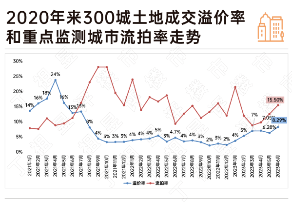 上半年,楼市增长动能持续放缓,房企现金流并未得到明显改善,房企的投资策略也高度聚焦核心城市。在此背景下,整体土拍市场热度有所回升,上半年整体溢价率增至15.5%,较2022年同期上升了6.5个百分点。