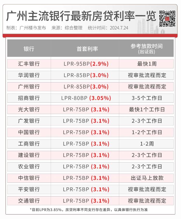 今天,楼市君摸查广州超10家主流银行,有外资行首套已经降到2.9%!