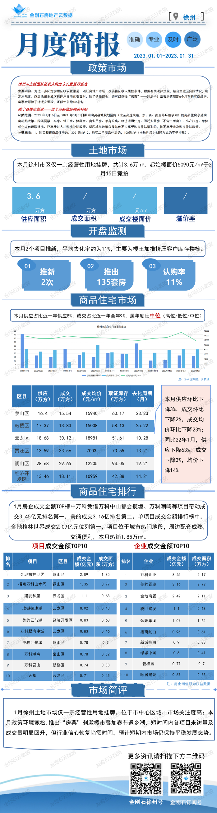 徐州1月楼市简报|本月徐州出台多条调控政策,万科、美的领跑市场